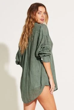 An easy pull-on linen short made for pairing. Elastic waist, side vents. Wear high or low. For a breezy oversized fit, size up.