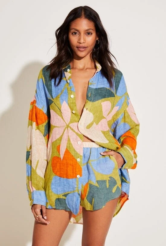 An easy pull-on linen short made for pairing. Elastic waist, side vents. Wear high or low. for a breezy oversized fit, size up.Make it a cabana set. Pair with this classic playa linen oversized shirt.