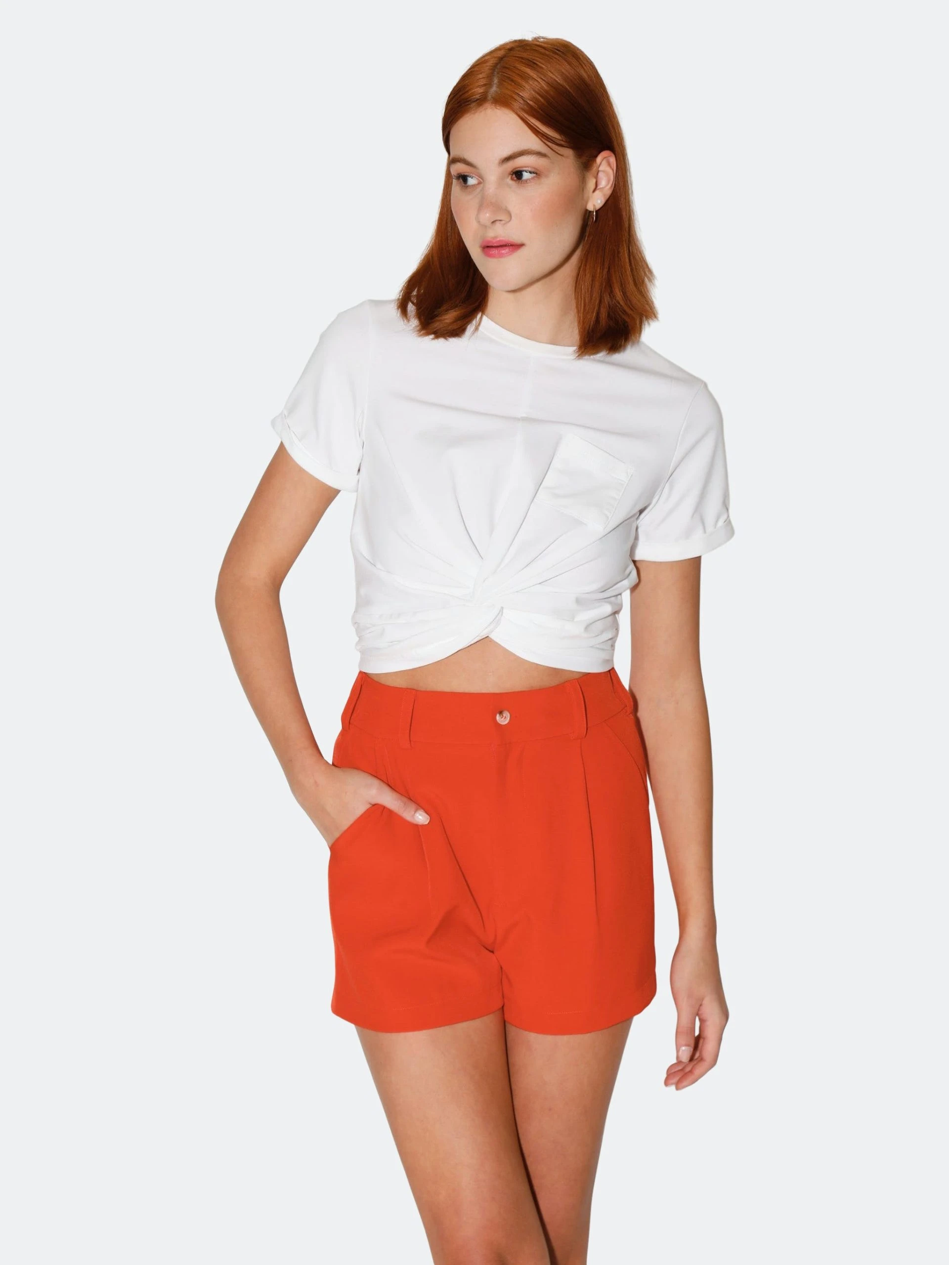With an elastic back panel, relaxed fit, and slant pockets, the Jasmine Shorts are easy and breezy!Button fly closure; Elastic at back waist; Belt loops; Fully linedSuiting