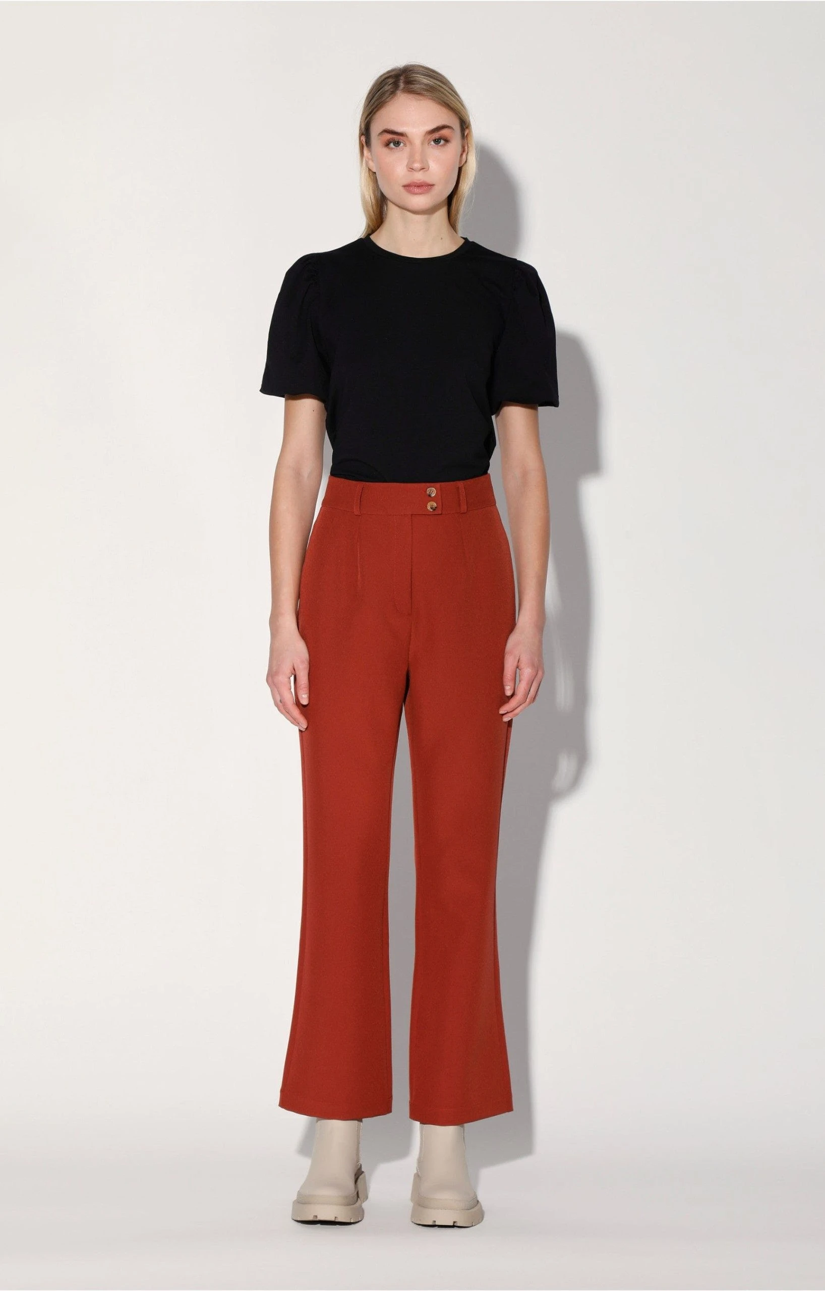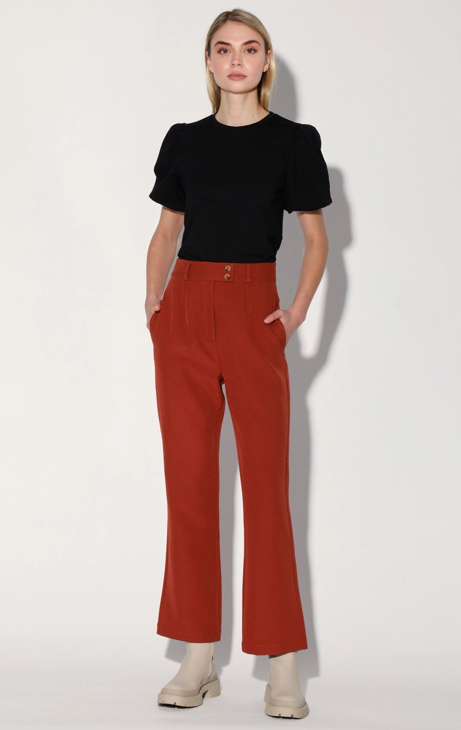 The Brenda Pant is adds some fun to your suit look with its crop flare shape! Pair back to this Kira Blazer to make a show stopping set.
