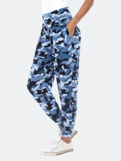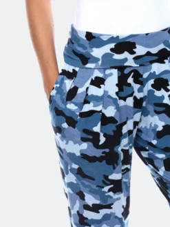 As relaxed and slouchy as your favorite lounge pant, but with enviable day-to-night-polish, the aladdin pant with camouflage/army print is a new must for of-the-moment style. Lightweight and draped with elastic waist and banded leg, these pants have a relaxed fit you’ll love.